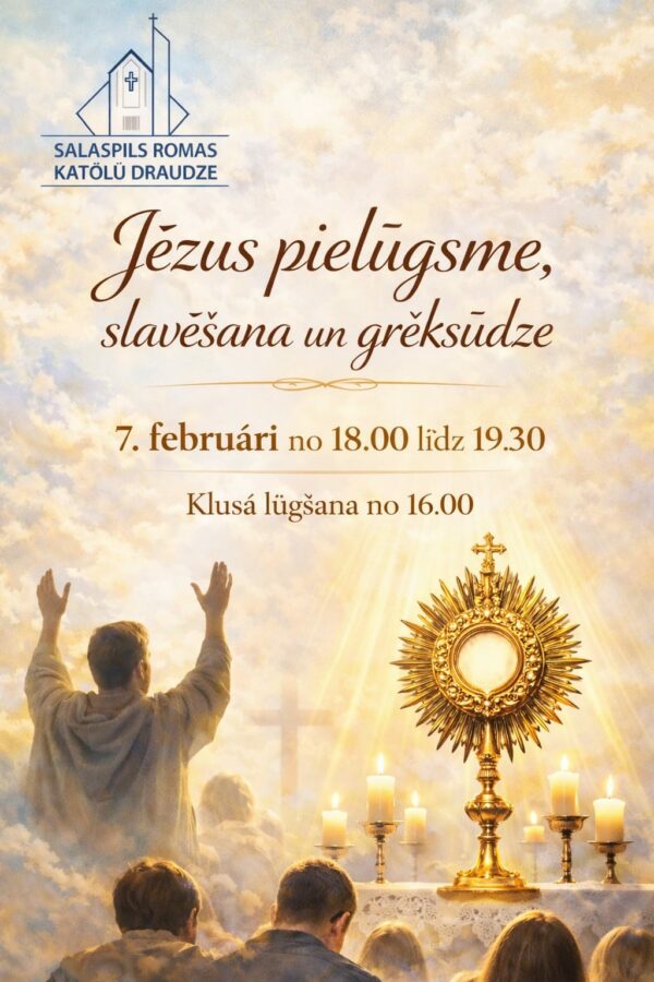 7.februāris – mēneša pirmā sestdiena un Pompejas Dievmātes diena. 16.00 Vissvētākā Sakramenta uzstādīšana adorācijai, rožukronis, 18.00 slavēšana un nesteidzīgas grēksūdzes iespēja līdz 19.30.