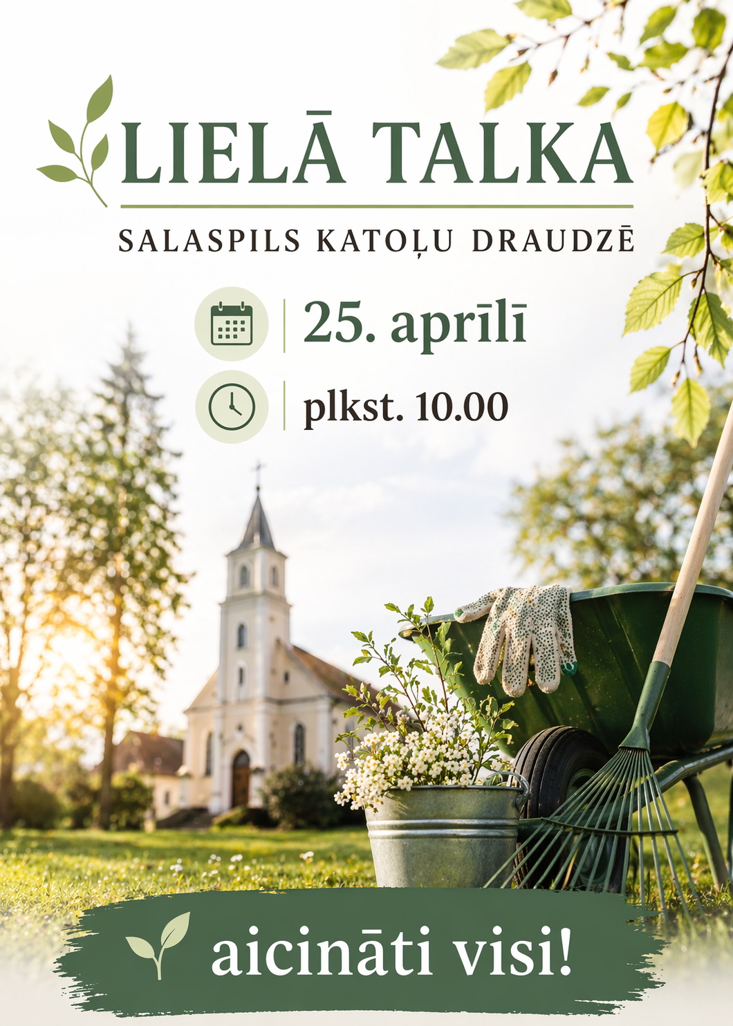 -Nākamajā sestdienā aicinām ikvienu piedalīties Lielajā talkā un uzkopt mūsu baznīcas teritoriju.